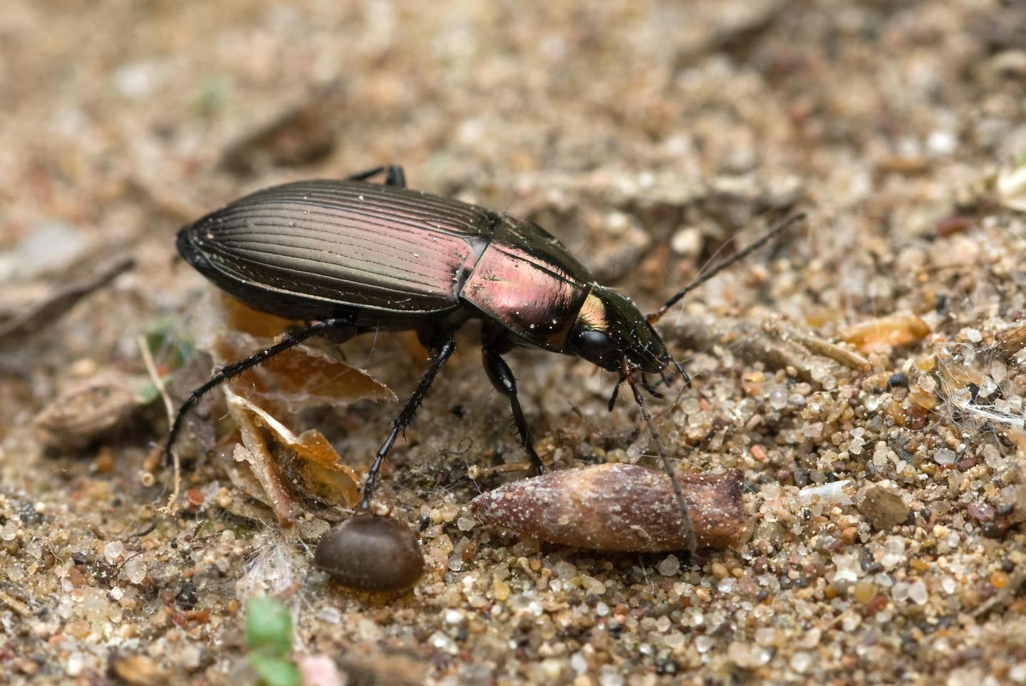 Ground beetles are common outdoor insects that can become a nuisance when they make their way indoors. Typically dark, shiny, and somewhat flattened in shape, these beetles live under leaves, mulch, stones, and other debris. While they’re beneficial in gardens because they feed on other insects, they’re less welcome when they start turning up in your home.
